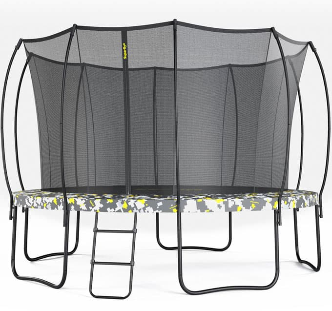 Внешний вид. Серия Superfly имеет двухсторонний защитный мат, то есть вы можете переворачивать мат и менять дизайн батута. В комплекте два цветовых решения: это Digital Como — он же цифровой камуфляж и Black classic или просто классический черный.